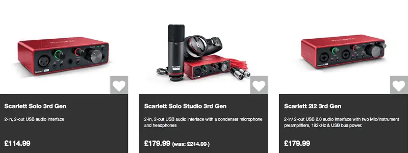 Worth noting that I did find the prices to be cheaper through Studiospares than directly through Focusrite.